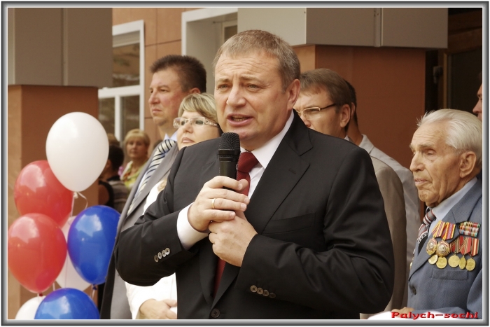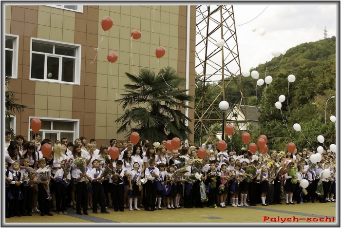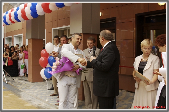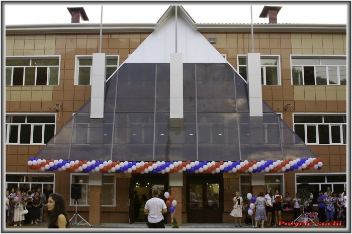 Красивый фасад, площадь перед школой уложена брусчаткой, клумбы, цветы, нарядные дети, музыка — в общем настоящий праздник. Приехал мэр А.Н.Пахомов. Линейка началась. Было сказано много красивых слов, вручены подарки, запущены шарики в небо, перерезана ленточка… Праздник удался.