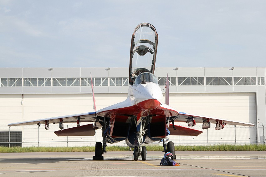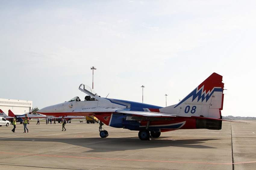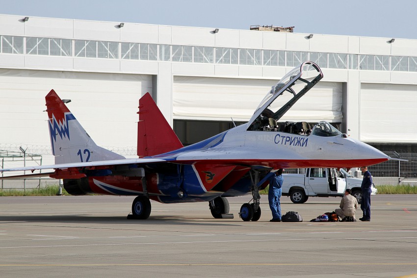 Еще в далеком 1990 году для самолётов МиГ-29 и МиГ-29УБ в качестве имиджевого хода летчики придумали оригинальную раскраску — белые фюзеляжи и ярко-синие кили, по бортам синие молнии, на воздухозаборниках под наплывами появились эмблемы группы — чёрные стрижи на красном фоне.
