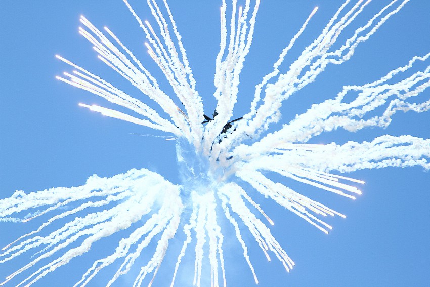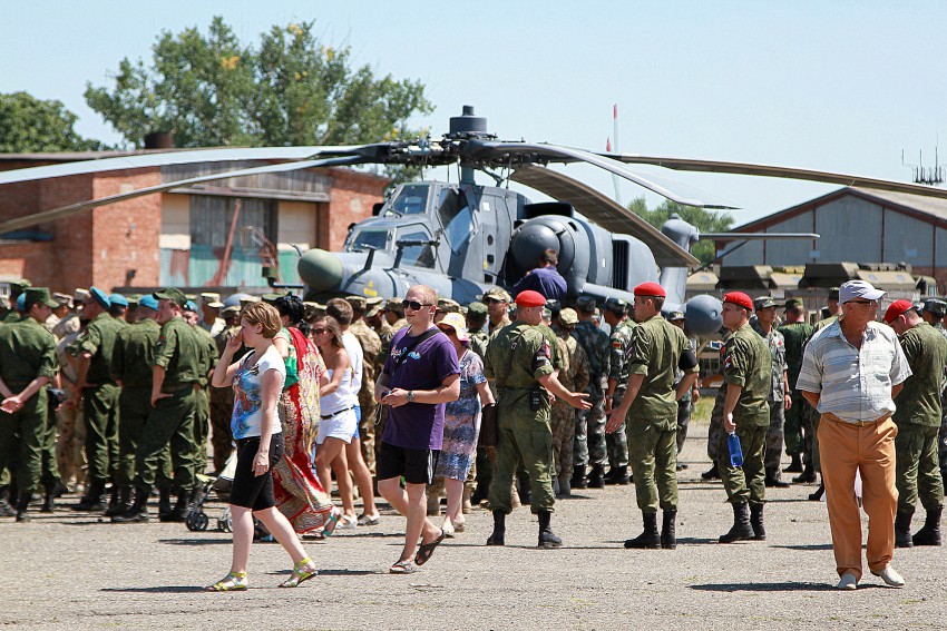 Над головой на минимальной высоте военная техника. Моментами — жутковато, потому как «Витязи» проходят над зрителями, нарушая правила любого авиашоу. Здесь — можно. Сегодня вообще можно многое, но с оговоркой — военные рядом. И своя специфика между границей можно-нельзя.