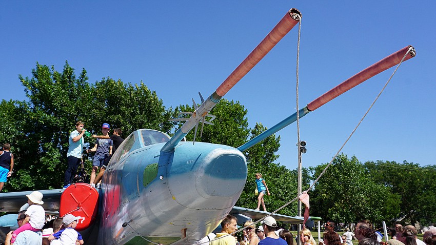 В Ейске вполне реально каждый второй так или иначе имеет отношение к небу и морской авиации, поэтому несмотря на 40-градусную жару на Ейском аэродроме собралось более десятка тысяч зрителей.