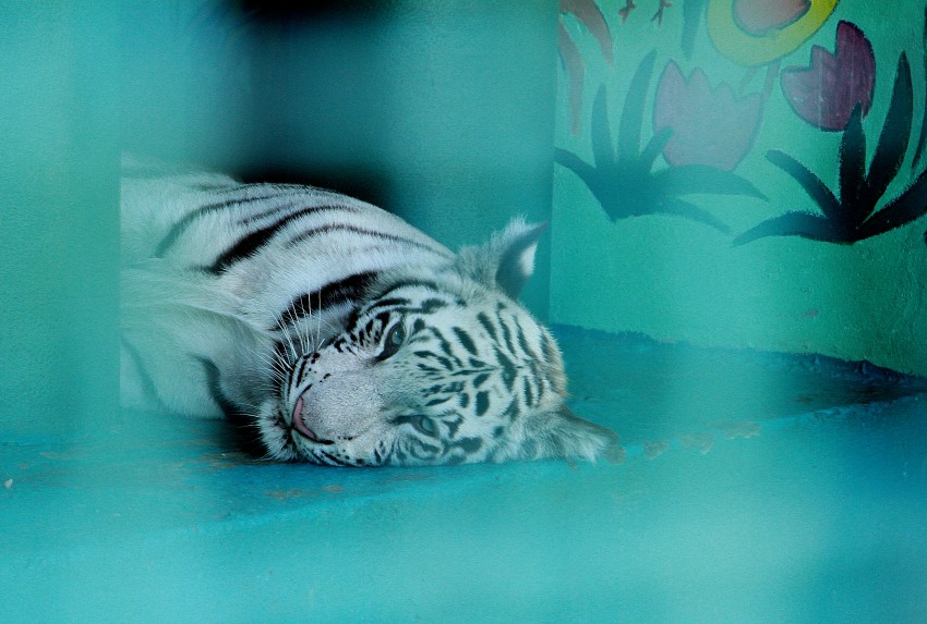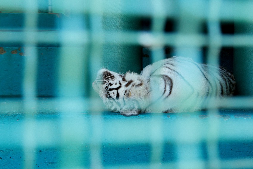 Зоопарк санатория в июне пополнился и молодыми белыми бенгальскими тиграми. Сейчас им по 9 месяцев и тигры дремлют, как самые обычные котята.