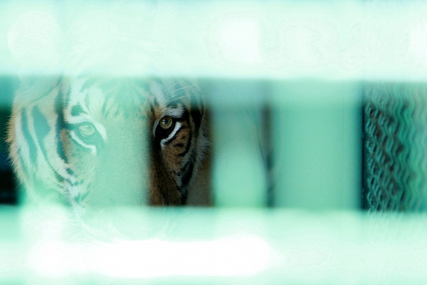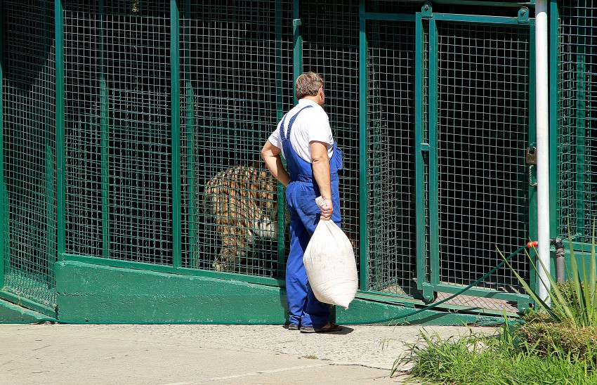 Лишь тигр Батыр бродит по клетке.