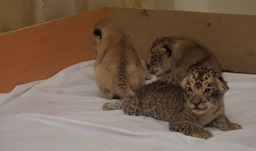 Рождение подобного котенка — всегда новость, учитывая тот факт, что лигров на планете всего несколько десятков. Показали котят прессе лишь тогда, когда они окрепли и набрались сил.