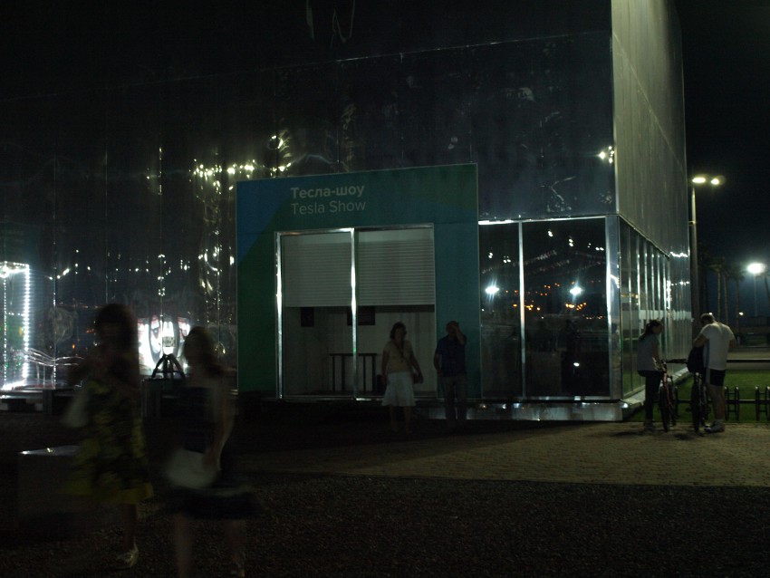 Встретившись там с друзьями — неспешно двинулись по направлению к жд станции. По пути почти ничего не фотографировал: не до того было, давно не виделись, хотелось пообщаться. Но попутно отмечал некоторые интересные моменты: вереницу электрокэбов, набитых туристами, обилие разных выставок, мимо которых шли. Две — автомобильной тематики: ретро и классика. Не могу сказать, чем кардинально различаются. Цена одинаковая — около пятисот. Выставка голограмм с картин Дали, Тесла-шоу(гром и рукотворные молнии, полагаю)), еще что-то подобное. Это только на километровом отрезке от моря до жд. вокзальчика. Кто-то потрудился, чтоб туристы не скучали — заплатив энную сумму.