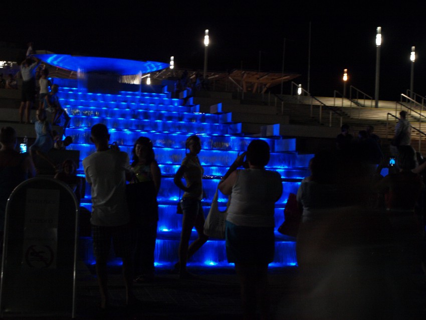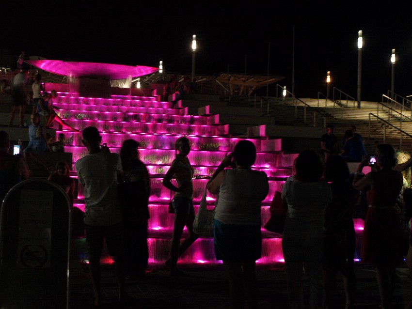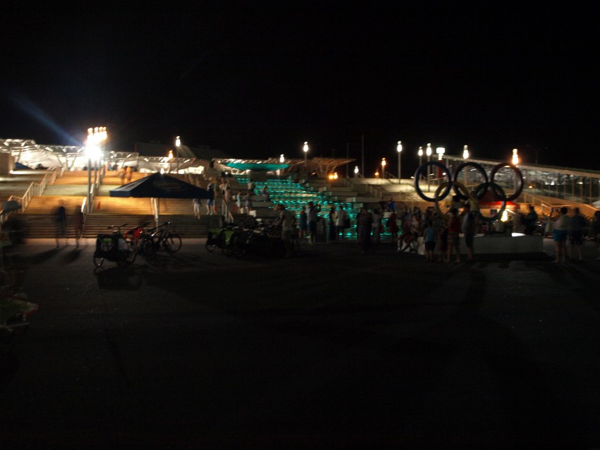 Здесь мы с сожалением простились с друзьями — они завтра уезжают в родной Мурманск. И запечатлели «фотосессии » у фонтана. Вообще — удивила наполненность Имеретинки: на перекрестках впору вешать дополнительные светофоры, а на набережной — обезопасить пешеходов от неимоверного количества велосипедистов. Как это сделали на вот этой эстакаде, разделив ее на пешеходную и велосипедные широкие дорожки.