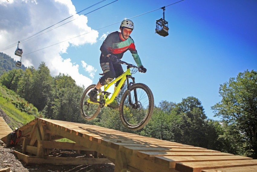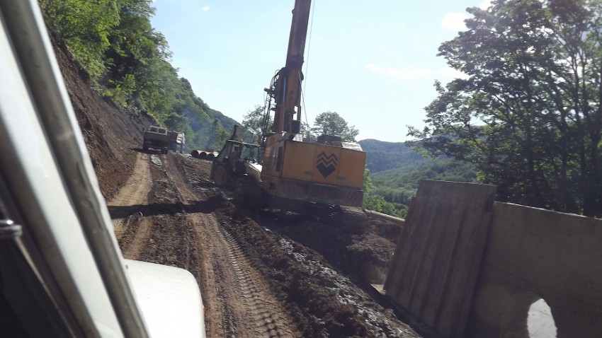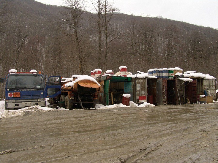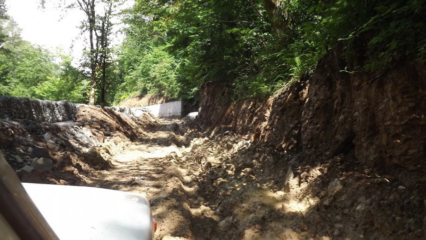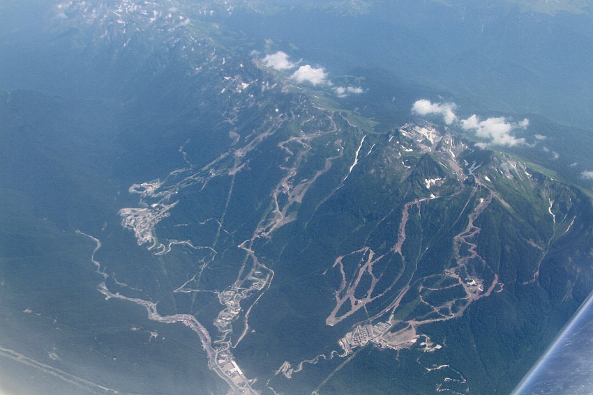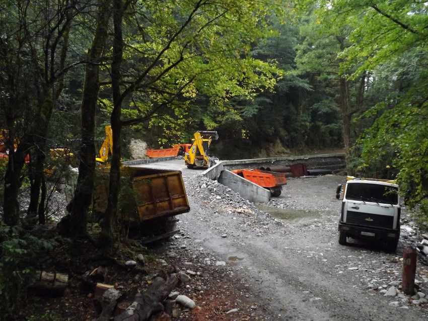 Безграмотное выражение. Там, где на фото разворочены все горы, среднее течение Мзымты.