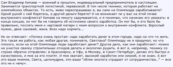 Ну да, оппозиция в своём репертуаре — берет деньги от тех, кого якобы осуждает :) Тут много таких было. Был, если кто помнит, такой мегаоператор Матросов, который ругал тут Олимпиаду по чем свет стоит, но в реале на хлебах администрации регулярно пасся и репортажи правильные снимал. Или вот еще один «эколог» из той же серии: