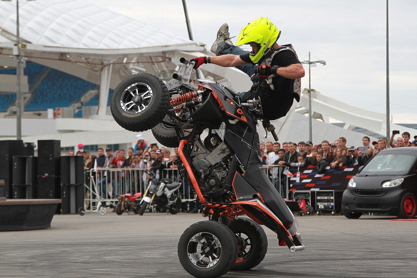 Одно — научиться делать стоппи и вилли на мотоцикле, развлекая и пугая этим соучастников по дорожному движению, и совсем иное — превратить отдельные трюки в завораживающее шоу, танец, где владение мотоциклом и квадроциклом возведено в высокий ранг искусства.