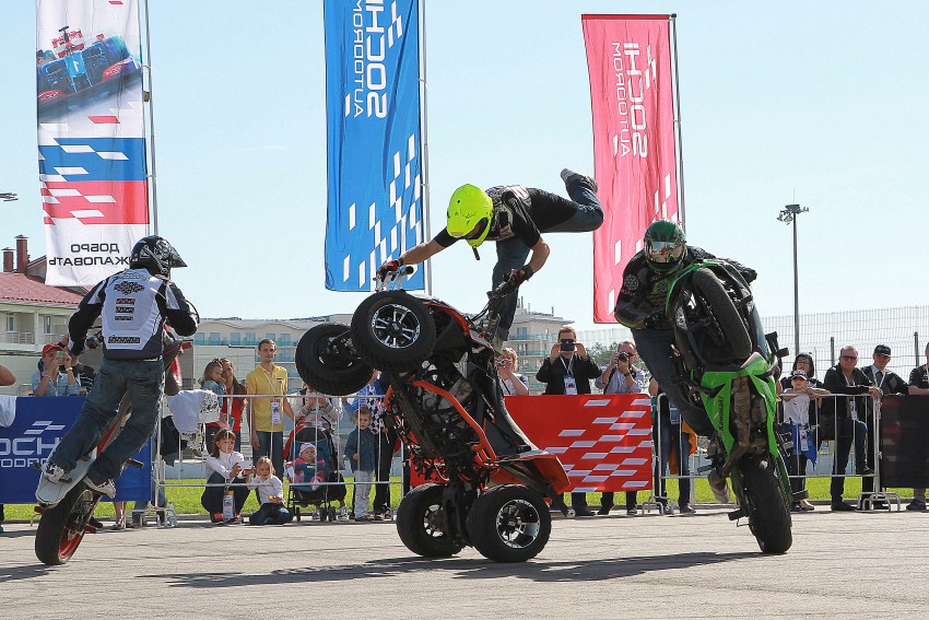 Шоу LEGENDstuntTEAM в исполнении Марата Канкадзе, Юрия Верховникова и Григория Талдыкина требует высочайшего мастерства владения мотоциклом и квадроциклом и собственным телом.