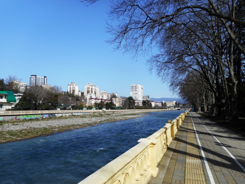 Приятно пройти вдоль реки любуясь «Сочинской першпективой», как в Питере говорят.