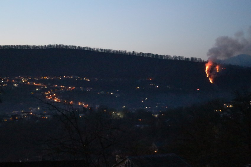 сейчас горит та сторона, что на Барановку двигается, но очаги справа по всей горе разбросаны. Мелкий мой утверждает, что это извержение вулкана и не иначе. )