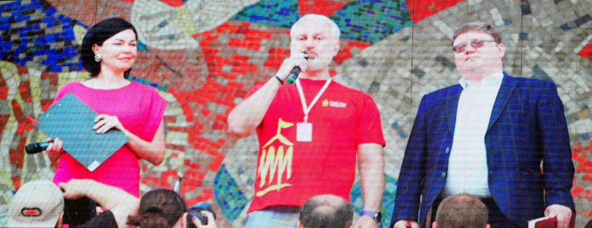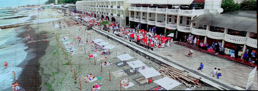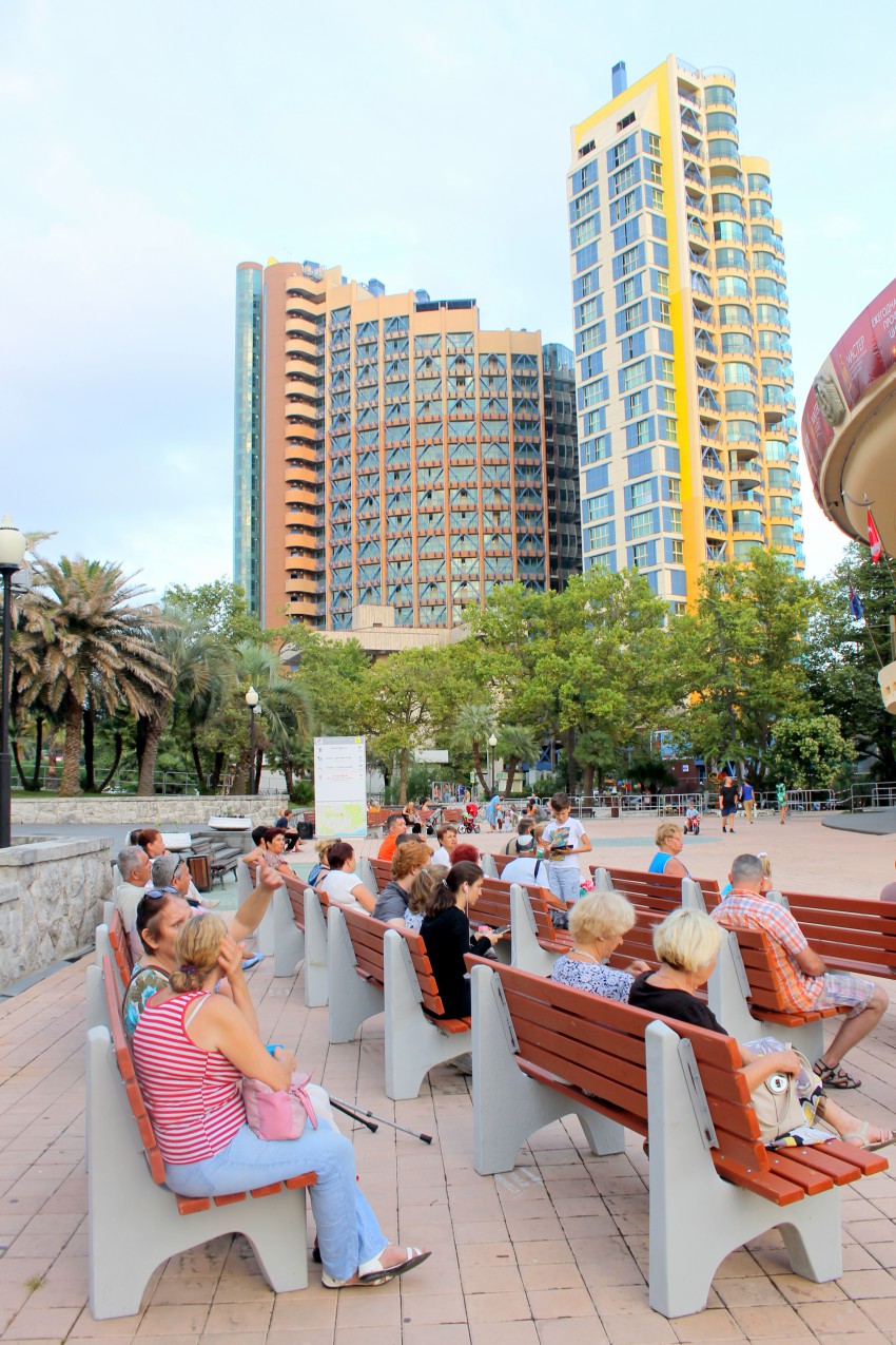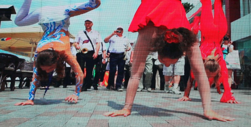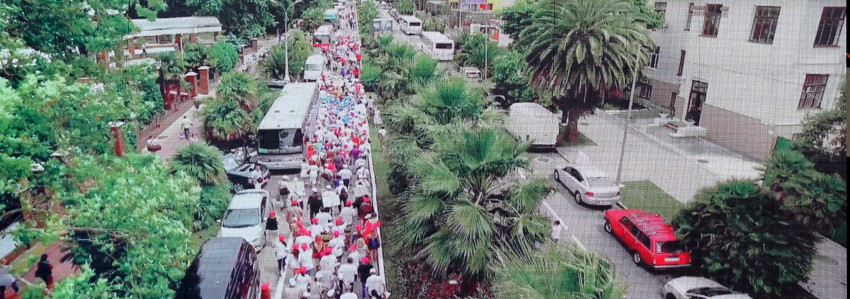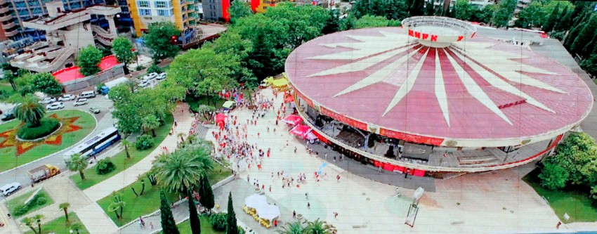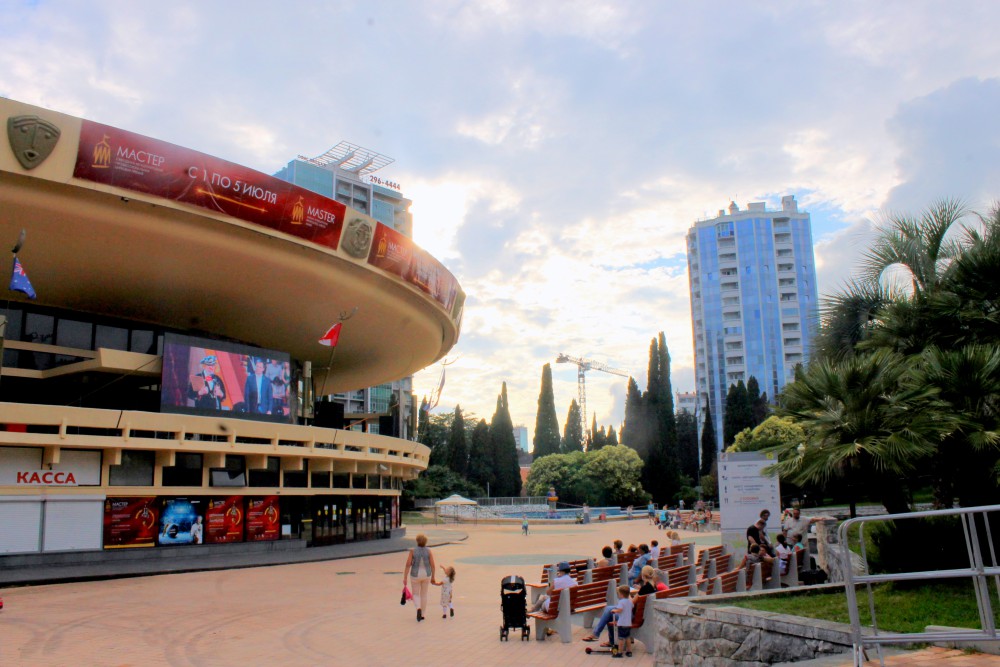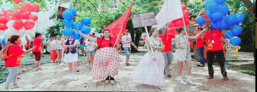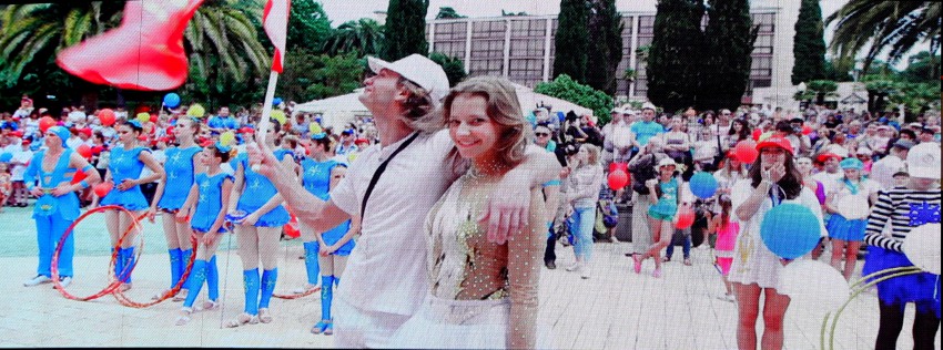 Назначенное на первое июля карнавальное шествие участников и гостей международной цирковой премии «Мастер» было отменено организаторами из-за синоптиков обещавших дождь на два дня. Они должны были пройти от Южного мола по приморской набережной до цирка. Однако дождь в этот день закончился в полдень и мы спустились к цирку. Собралось около ста зрителей. В назначенное время у Южного мола делегации циркачей собрались, но шествием пришли в к/з «Фестивальный» где состоялось представление участников. Не дождавшись у цирка представителей Второй ежегодной международной цирковой премии «Мастер» сфотографировал с большого телевизора первое шествие в Сочи и новости цирка 2015 года.