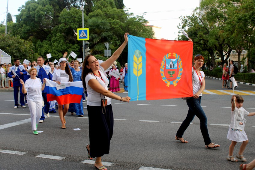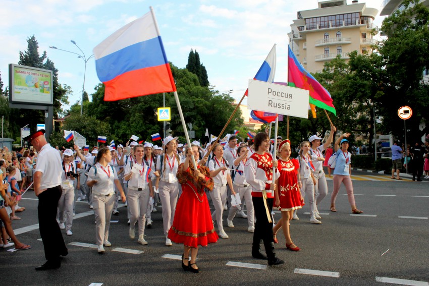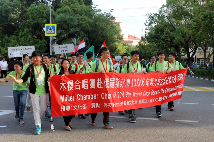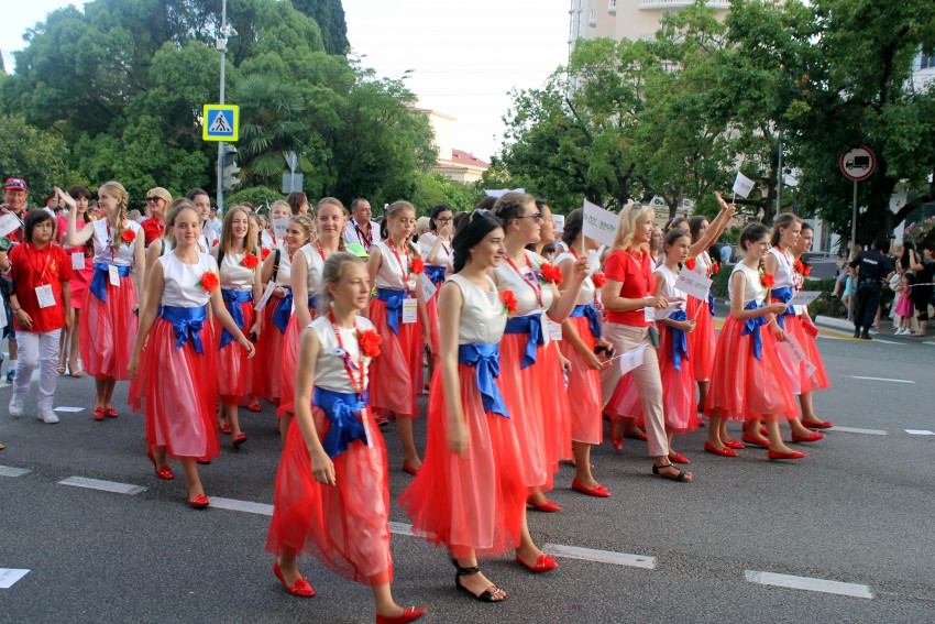 В рамках девятых Всемирных хоровых игр 12 июля в городе Сочи состоялся Парад наций. Около пяти тысяч человек в национальных костюмах из России, Испании, Китая, Венесуэлы, Кореи, Южной Африки и других стран прошли от Зимнего театра до площади Южного мола морского порта. Судя по песням российской колонны восхваляли в своих песнях единство наций и дружбу между народами. Количество сочинцев и гостей курорта ставших зрителями этого необычного праздника музыки было больше чем на параде девятого мая. Всего 130 хоров из 25 стран выстроились в алфавитном порядке. Самые большие колонны сформировали россияне и китайцы. Во главе колонны следовал коллектив из Афганистана и хор инвалидов-колясочников из Армении. Снимал парад при выходе от Зимнего театра на Курортный проспект.