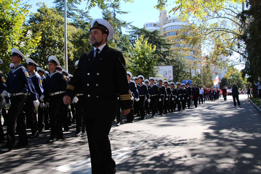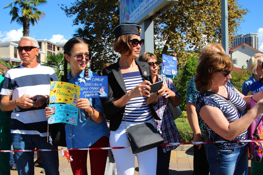 И что еще режет глаз — смотрящие парад держать таблички «Вы — гордость России», так почему все названия судов на английском языке. Я считаю, это неуважение к жителям этой же России…