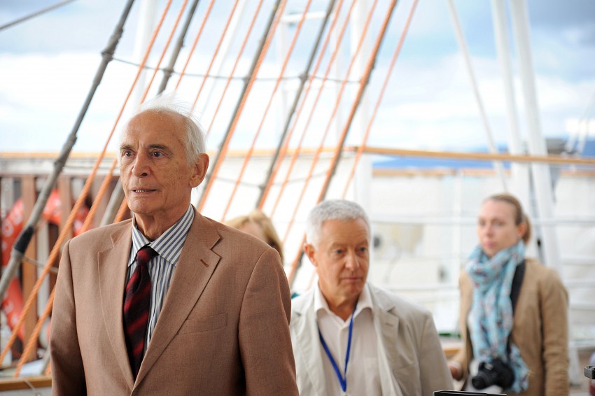 А это из истории «Херсонеса» в Сочи — актер Василий Лановой на его борту во время Черноморской регаты больших парусников.