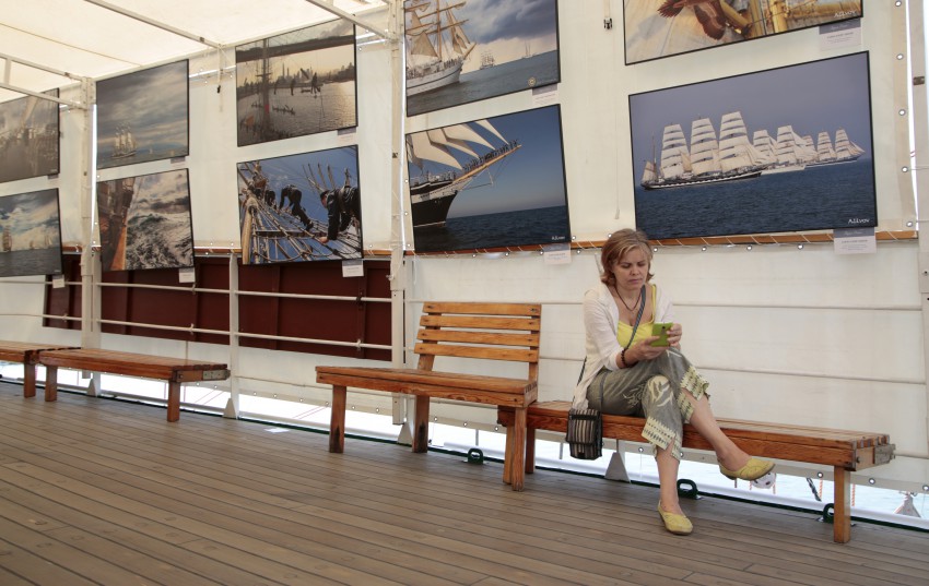 Парусное учебное судно — не просто звезда выставки, но и жемчужина Черного моря. Порт приписки — Севастополь, судьба — суровая до ужаса. Ступая на палубу, помните, что еще пару лет назад на ней едва ли не росли деревья, а будущее белоснежного ныне трехмачтового фрегата было темным.