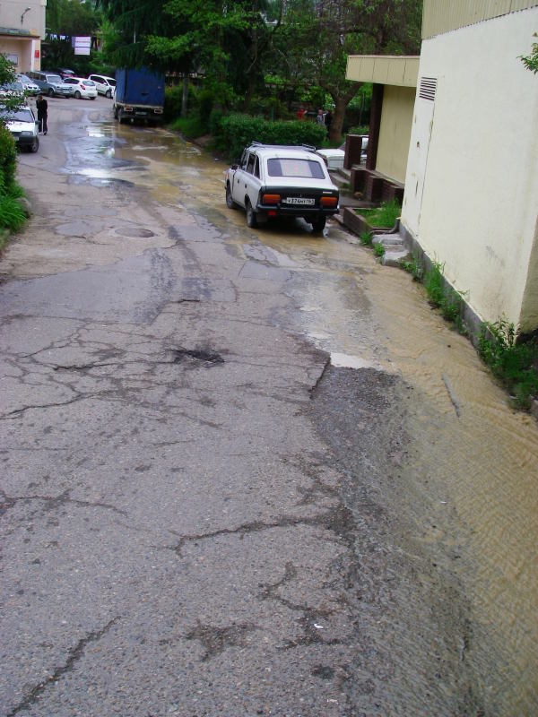 В результате после трёх часов дня разлилась вот такая река по дороге: