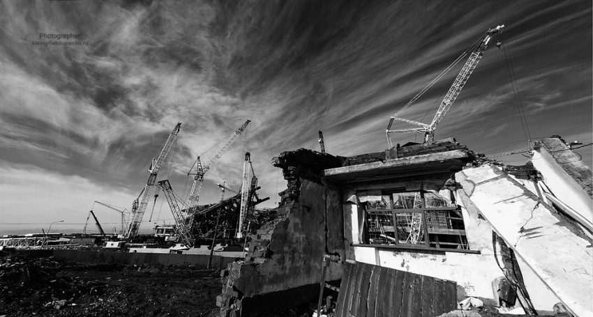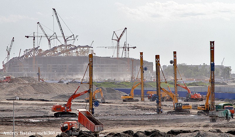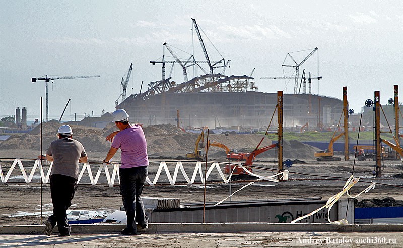 Одна из повседневных картинок стройки Олимпийского парка в Сочи.