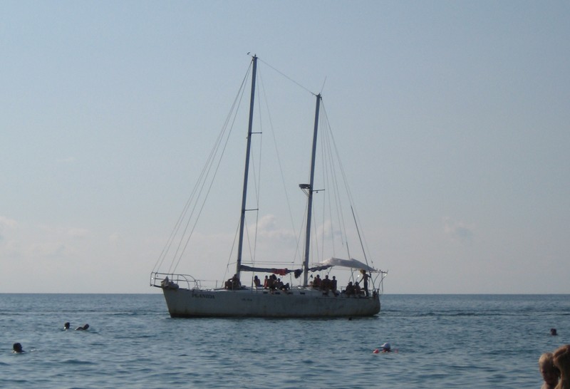На ржавой яхте уместилась толпа отдыхающих