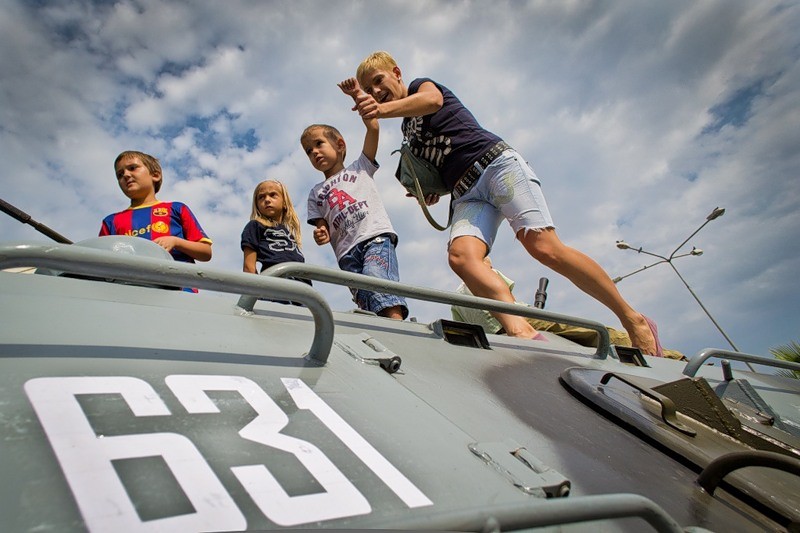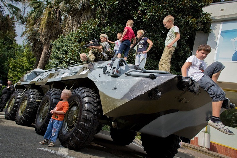 27. Дети взобрались на БТР