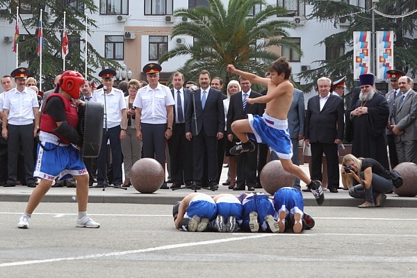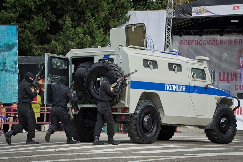 Сегодня утром, в день завершающий всероссийскую благотворительную акцию «Щит и Лира», проводимую МВД, на площади у администрации города Сочи прошел праздничный парад личного состава и техники сочинской полиции.