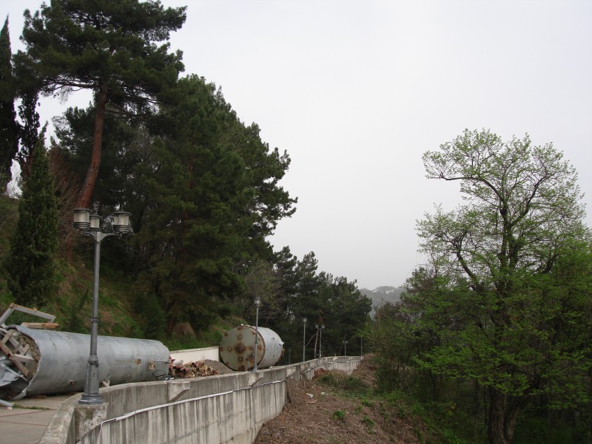 Довольно чисто, но кругом — запустение. Металлические конструкции, лежащие на дороге к санаторию «Мыс Видный»