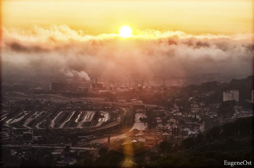 тут солнце пробивало тучи лучами… было красиво… фото так не передает…