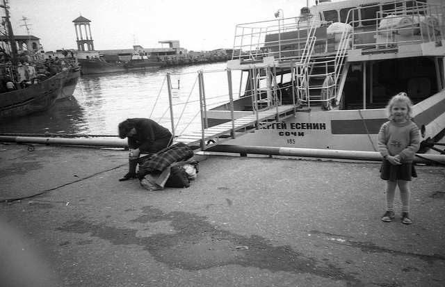Официально 18 августа 1992 году начался Грузино-абхазский конфликт. Через два три месяца военными и гражданскими судами в Сочи стали доставляться большое количество беженцев. Несколько снимков в порту Сочи в эти дни