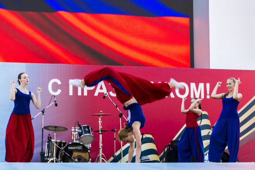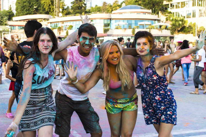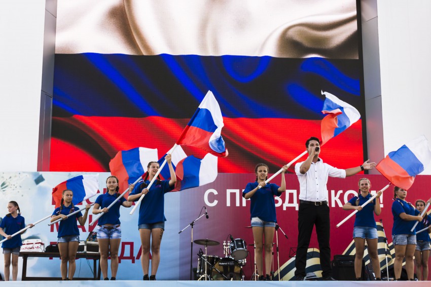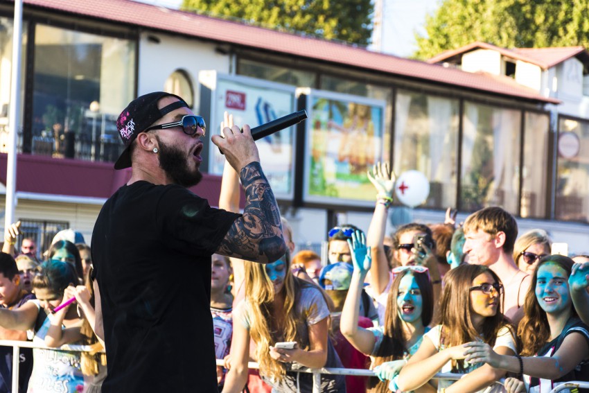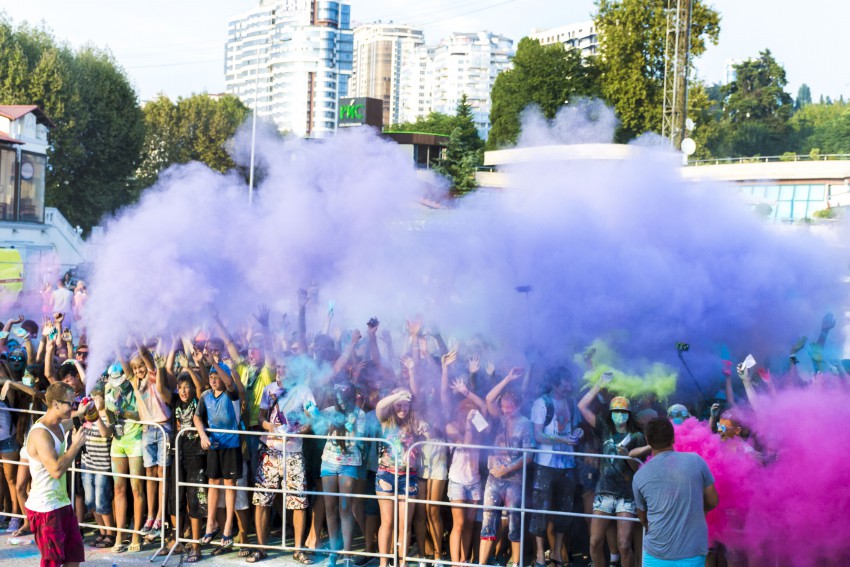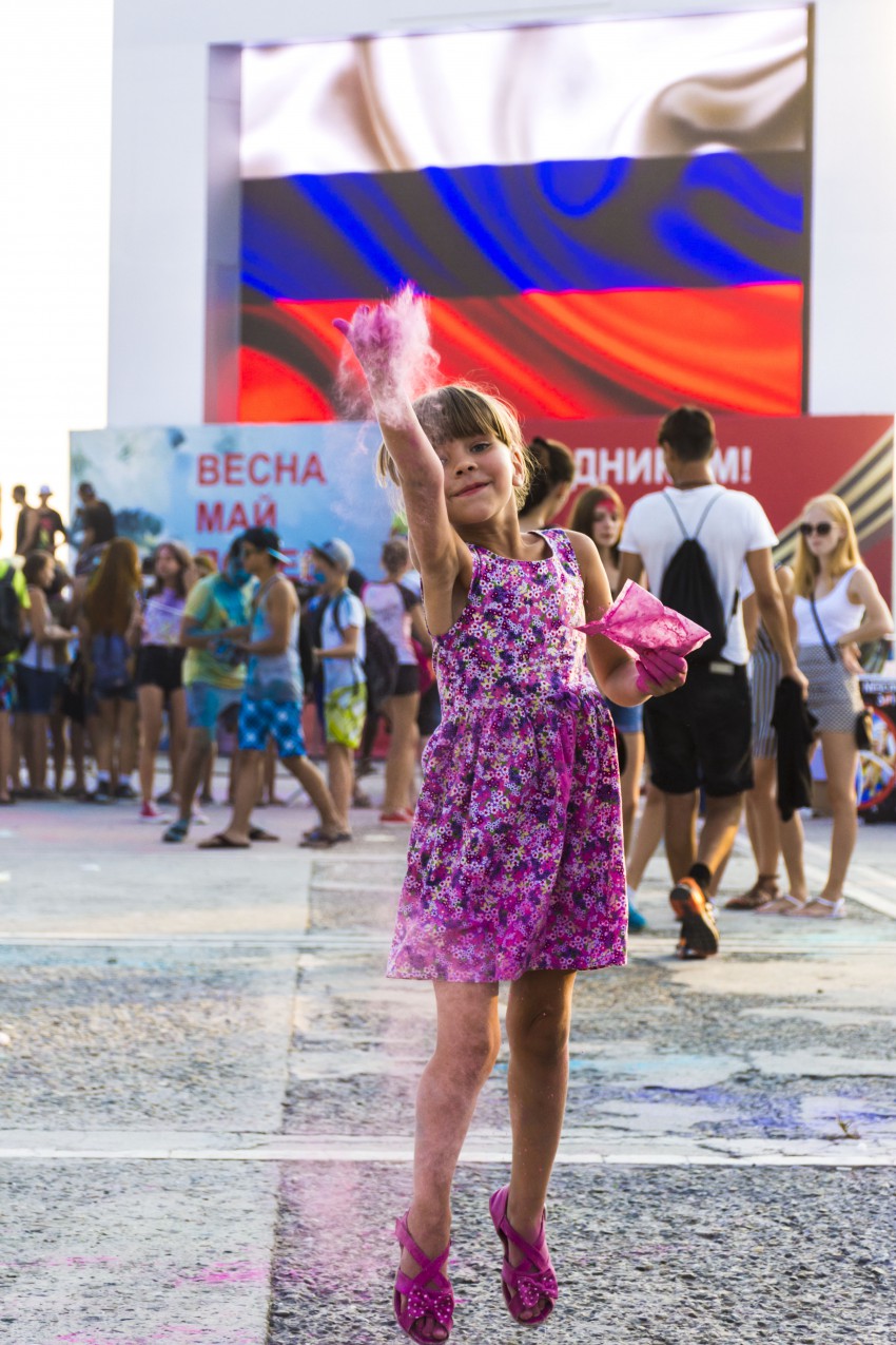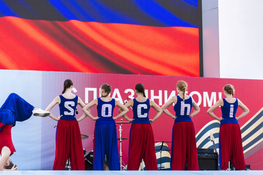 Празднование началось с официальной части — сцена и вокруг неё все было в ярких цветах Государственного триколора, выступили официальные лица сочинской горадминистрации. Дальше праздник продолжился «Карнавалом красок» в музыкальном сопровождении Рэп-исполнителей.