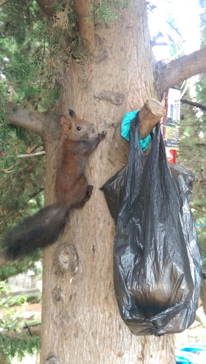 У меня белка стащила упаковку орехов арахис со стола в Ахштырском каньоне. У цирка близко подошла, видимо надеялась получить еду. На детской площадке у моего дома сорвала грецкий орех с дерева прямо надо мной и убежала по забору. Жаль сфотографировать не успел. Вам за смекалку плюс.