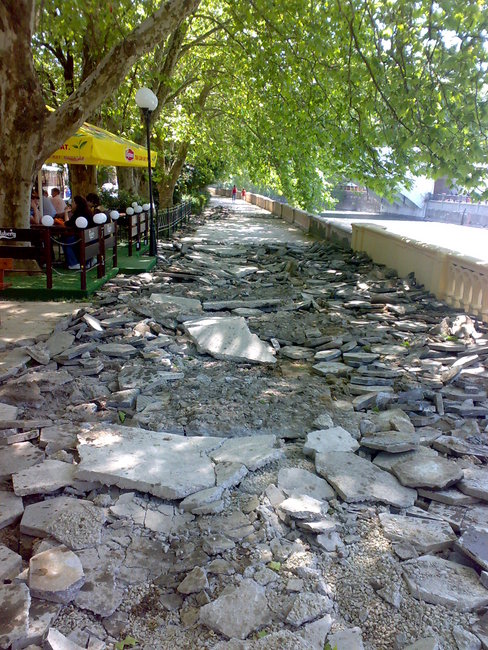 Буквально разнесли сегодня этот тротуар прямо на спуске с моста. По какой причине — не понятно!