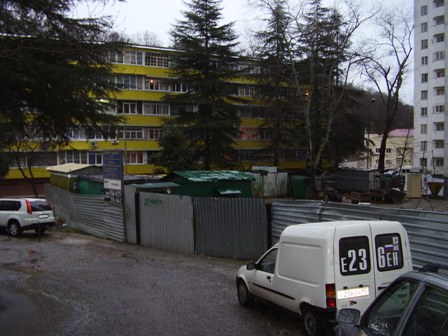 Но я не о том. Со спортплощадкой в самом мкр. «Мацестинская долина» всегда существовали объективные трудности, ввиду того, что он расположен на крутой горе. Однако! много лет назад существовала небольшая спортплощадка. Напротив 14-го общежития (которое уже фигурировало на Привете в статье «Фасад покрасили, помыли...»). Вот это место: