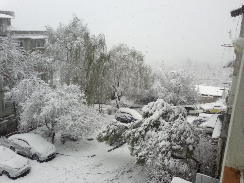 Везде заметает, а Адлер только чуть чуть присыпало и уже солнце вышло… все тает))))