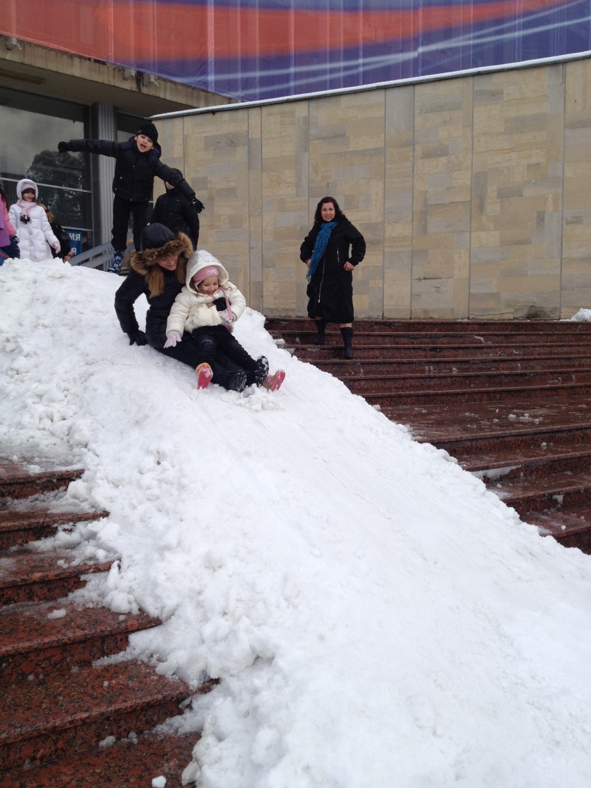 Прям в центре мы сделали настоящую снежную горку для детей.