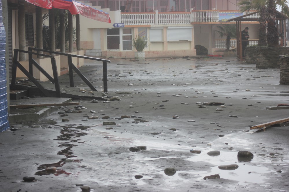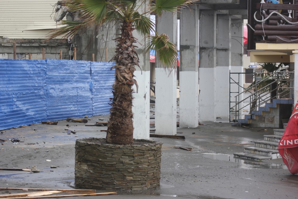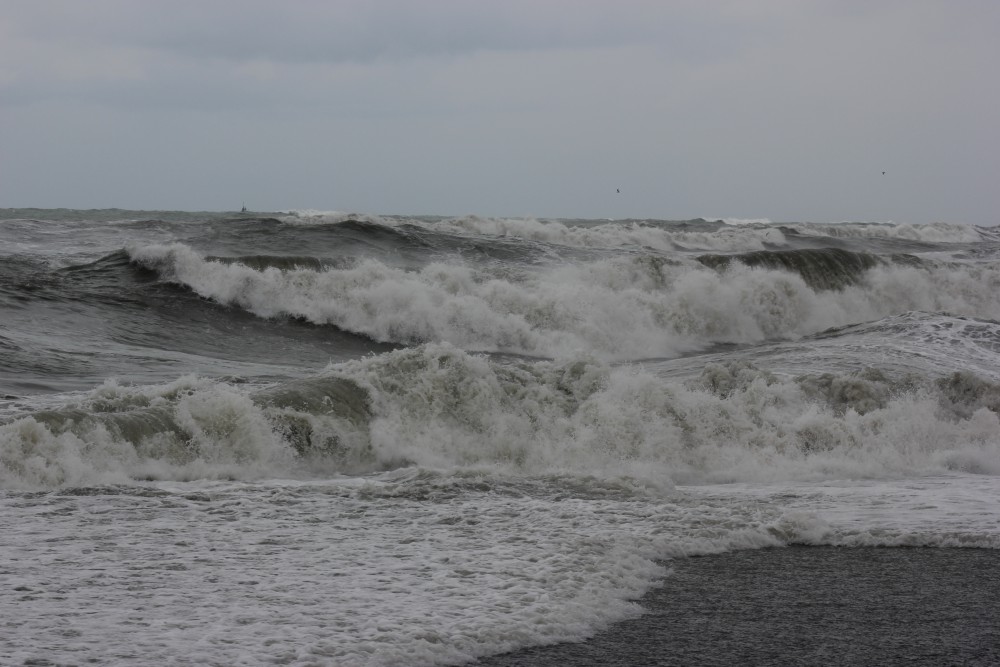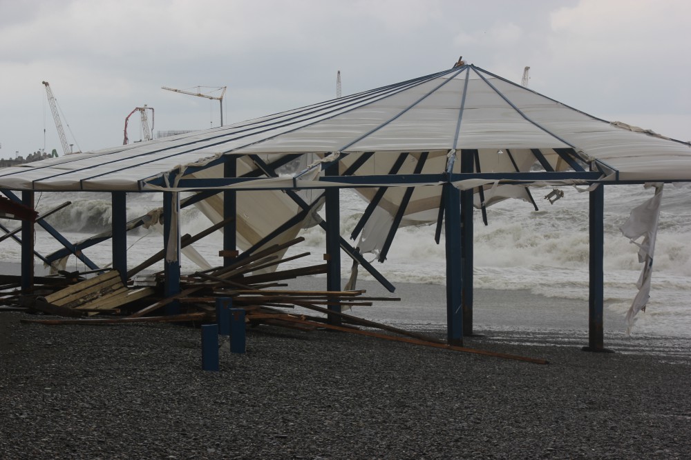 Насчёт силы — помнится в 1987(или 1988?) году был шторм, пробивший южный мол (который с маяком) в Сочинском порту. А в том месте где стоит «Нептун», скамейки были завалены не песочком, а валунами.