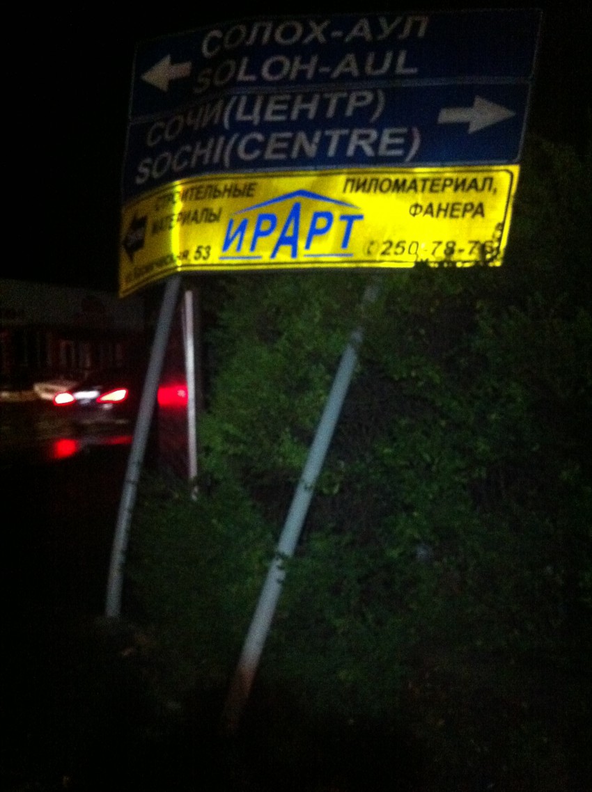 много покосившихся столбов, оборванных проводов, этот висит прям над полосой в Дагомыс…
