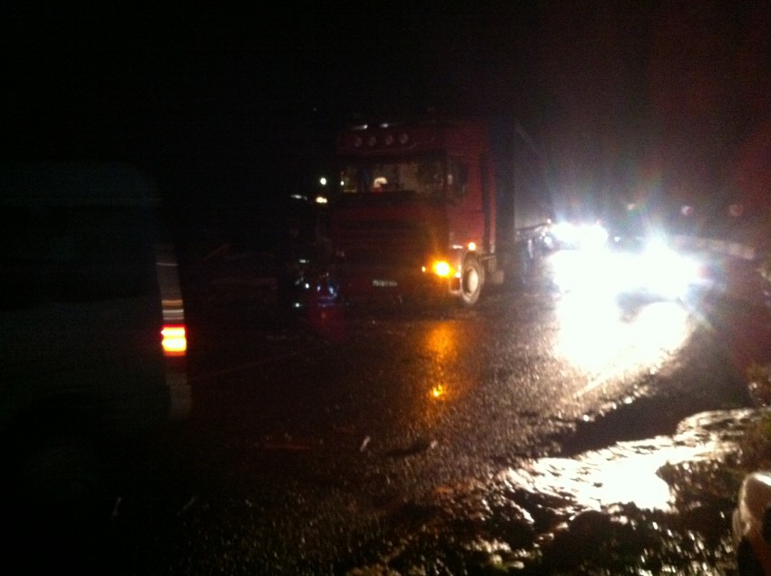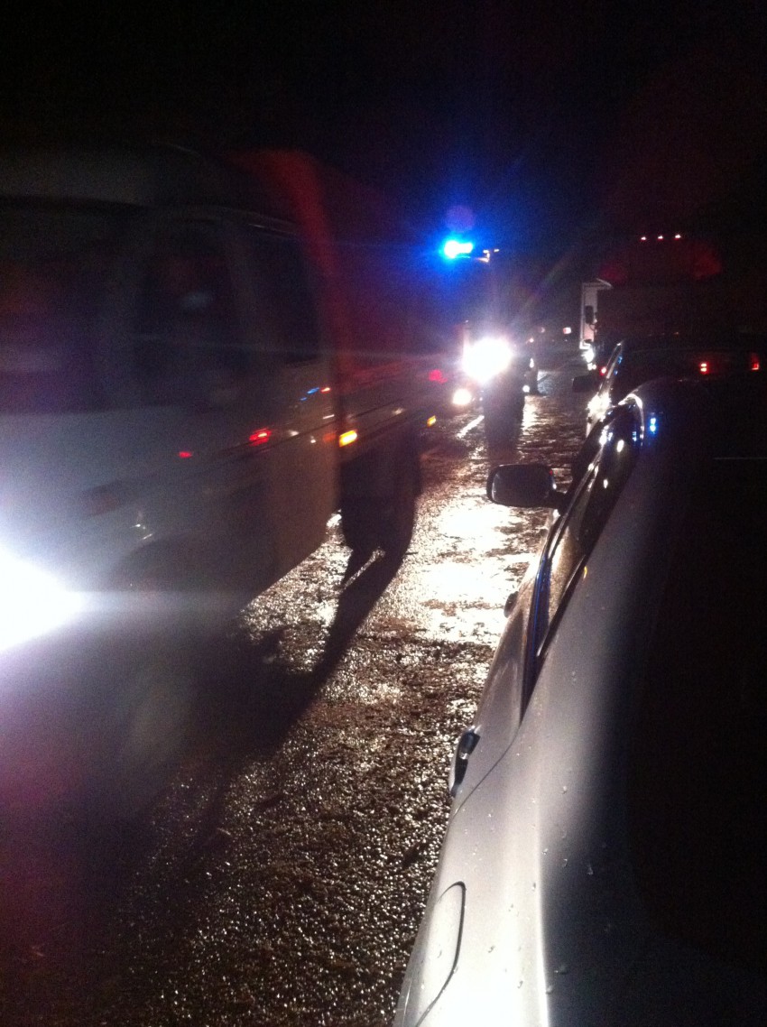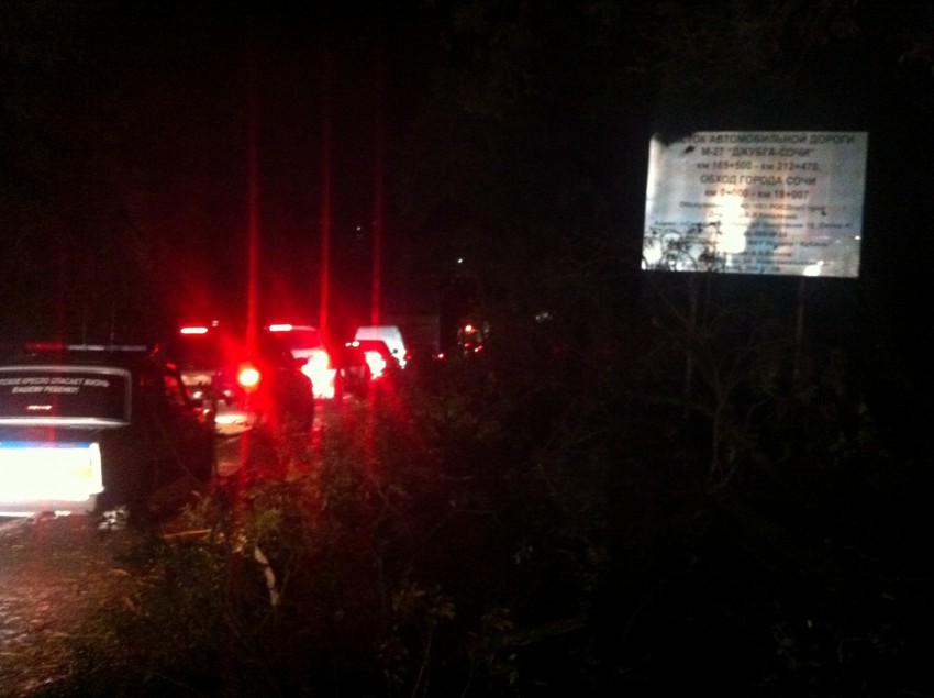«пробка» образовалась в сторону Лоо ещё до 19:00, и потом «пробка» стояла в шоке во время урагана, и после завалов деревьев стала двухсторонней…