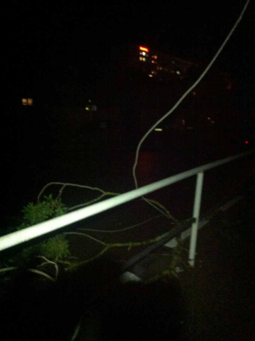 дерево оборвало провода и помяло газовую трубу, благо всё обесточили…