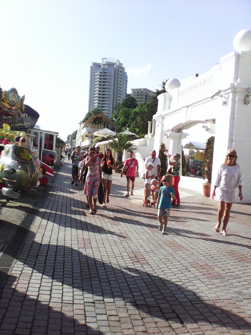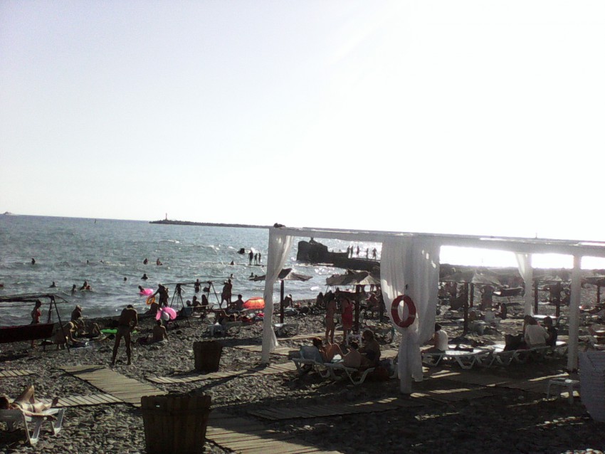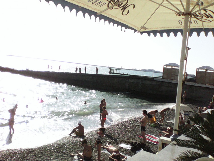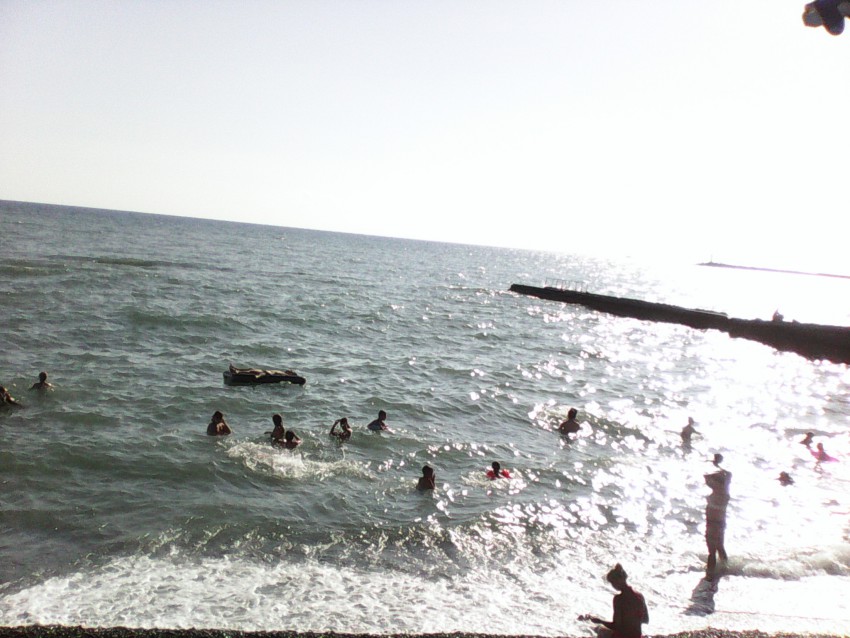 Не смотря на то, что сегодня утром шел дождь, во второй половине распогодилось (как обычно это у нас бывает) и люди заторопились на набережную, кто-то погулять, а кто-то и искупаться.