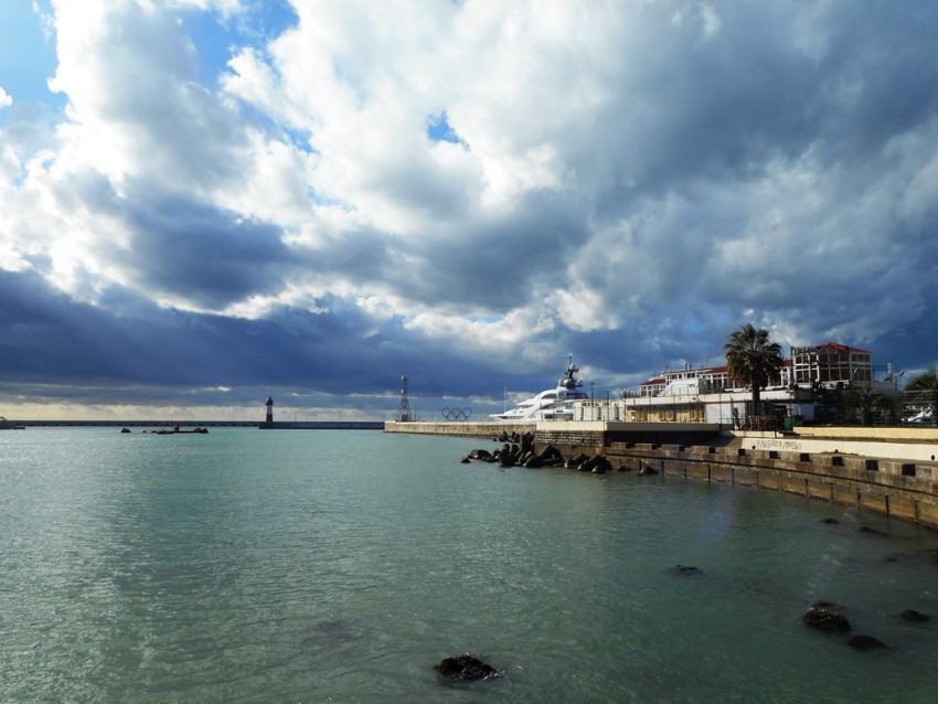 Вчера я прогулялся до морпорта. Видимо Сочи, по крайней мере в его центральной части, научился быстро справляться с потопами. Все видели что по Навагинской тоже текли реки в ливень.