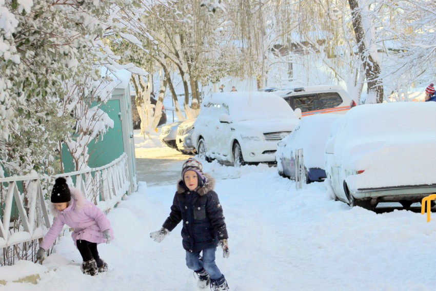 Детям радостно вдвойне-покататься на санках, в снежки поиграть, в школу идти не надо. Маршрутные такси из-за гололёда на Лысую гору не ходят. На Курортный проспект люди спускаются пешком.