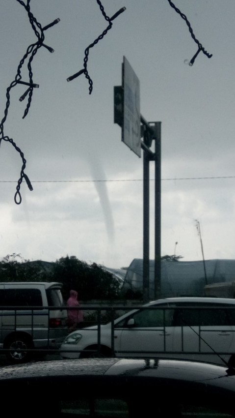 Аэропорт не принимал несколько часов, то-ли из-за ливня, то-ли из-за смерчей, и сразу 5 бортов круги наворачивали над морем в окрестностях.