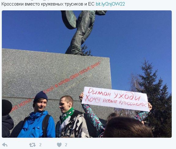 Акции прошли в нескольких городах России. Организовали и в Ульяновске. В группе участников митинга во «Вконтакте» сообщалось, что администрация Ульяновска официальную заявку на проведение отклонила. В связи с этим было решено организовать одиночные пикеты на улице Гончарова. В итоге на митинг собрались около 300 ульяновцев в возрасте от 14 лет. Люди пришли с плакатами «Сам держись!» и кроссовками (именно покупка обуви Медведевым в интернете положила начало расследованию ФБК ). Участники прошлись по улице Гончарова и Ленина.