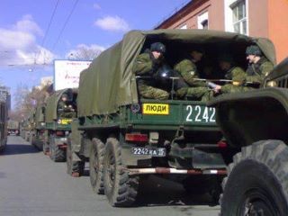 На бортах надписи: «Вы еще выступаете? Значит мы едем к Вам… — Автозаки ФСБ»