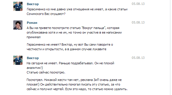 Сейчас почитал -… и что-то сложилось у меня такое «оценочное суждение», что зря юрист вчера моё имя трепал, а потом сегодня еще и выложил личную свою с другим человеком переписку… Совсем, совсем зря.