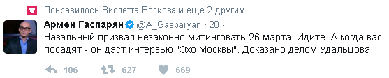 Ув. Колба, если вы заметили, то речь идет и митинге и его тематике, а не о личности Навального. Что за манера переводить стрелки в другую плоскость? Так давайте тогда обсуждать вас, как личность (сколько вы весите, красивая или некрасивая, сколько мужей у вас было). Вам это понравится? Не думаю.