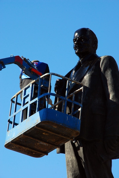 Между прочим, этот известный в стране памятник Ленину работы Виленского и Руднева, является памятником истории и культуры, занесен в реестр памятников, охраняемых государством. Никакие ремонтные и реставрационные работы, изменяющие авторский замысел и первоначальный вид таких памятников, не могут проводиться без согласования с соответствующими органами, следящими за их созранностью. Этот памятник Ленину находится на балансе администрации города и она несет ответственность за его сохранность.