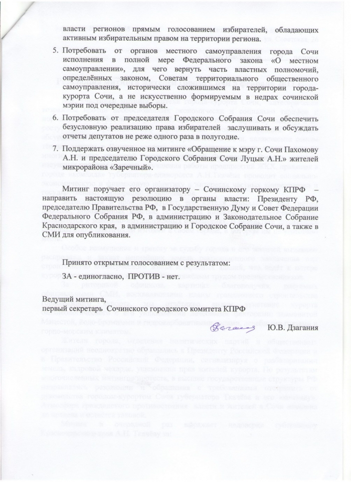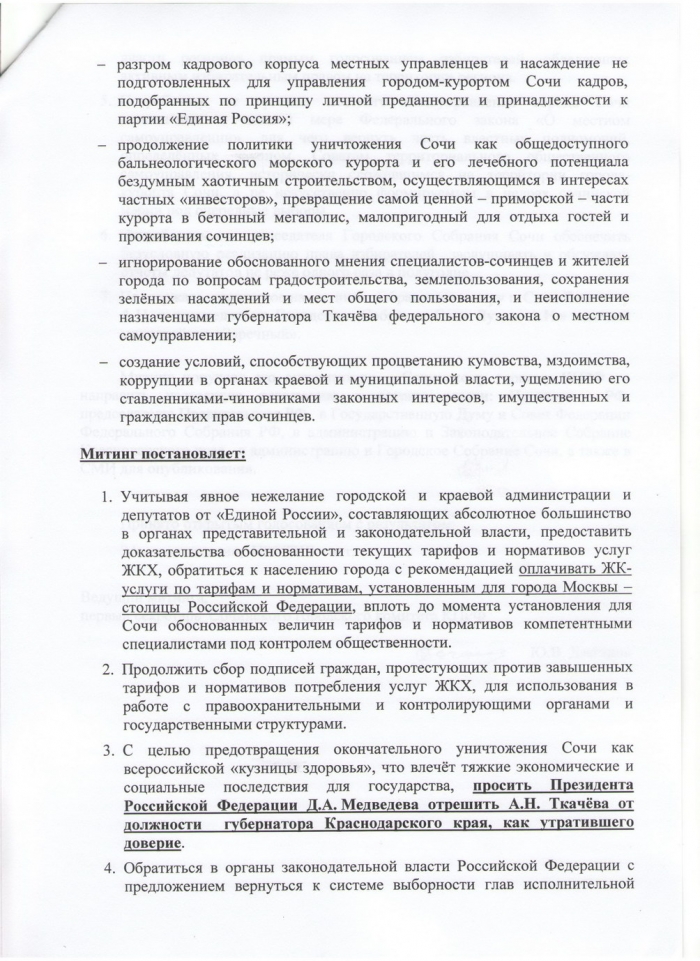 В связи с тем, что трусоватые руководители многих сочинских СМИ не прислали корреспондентов для освещения митинга, также как не осмелились сообщить о судебном процессе, с треском проигранном администрацией коммунистам, просим блоггеров распространить данный документ любыми доступными способами.