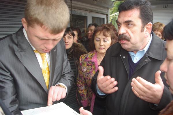 Администрация рынка „Чайка“(справа) и судебный пристав(слева)