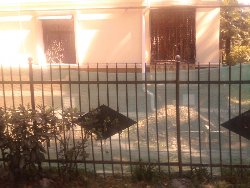Еще вчера утром за защитной сеткой, натянутой вдоль забора, несколько строителей ударными темпами перекапывали газон